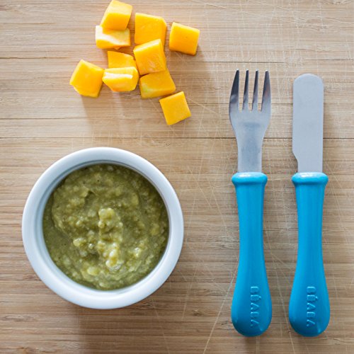 Three piece set that includes a fork, spoon and knife. Each stainless piece has a plastic ergonomic handle sized just-right for kids. The arched shape and unique design helps prevent germ contamination by lifting the utensil off the table top. BPA, phthalate and lead free. Dishwasher safe.Ergonomic handle designed for your child's hand